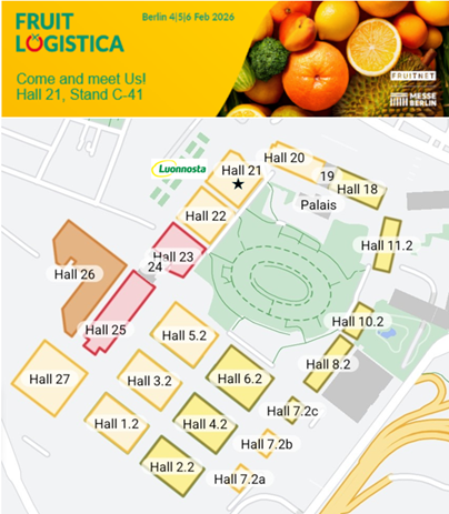 Luonnosta group is exhibiting once again at the Fruit Logistica trade fair in Berlin next month! Luonnosta’s stand is located in hall 21, along C-passage at place no 41. You are warmly welcome to visit us!